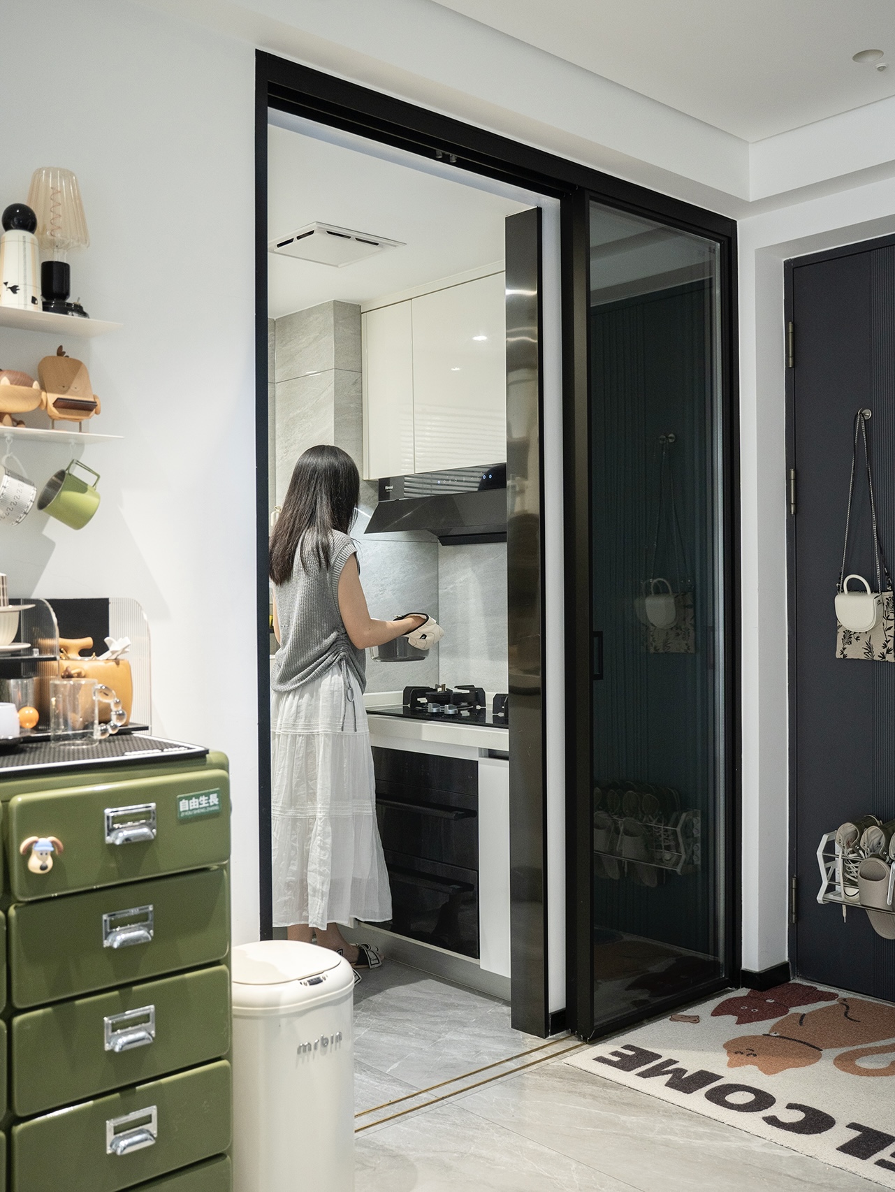 8平米黑白極簡(jiǎn)夢(mèng)中情廚,爆炒也無(wú)懼油煙
