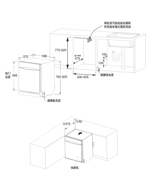 外形尺寸(mm) : (W)598×(D)570×(H)(765-825)