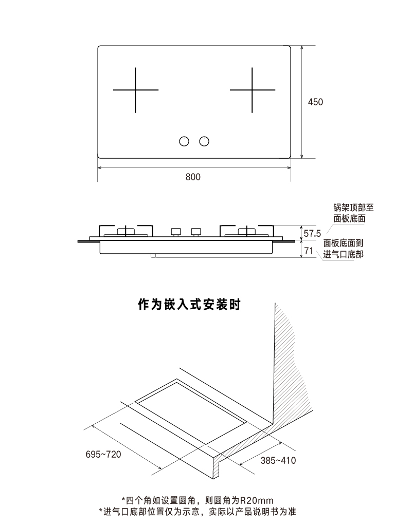 嵌裝開孔尺寸(mm) : (K7)(W)700×(D)400×R20