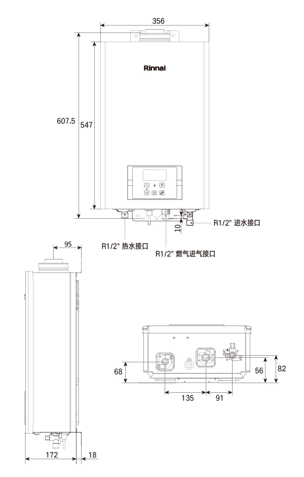 燃?xì)膺M(jìn)氣接口規(guī)格 : R1/2″