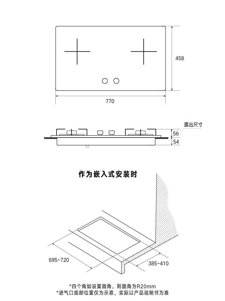 嵌裝開孔尺寸(mm) : (K7)(W)700×(D)400×R20